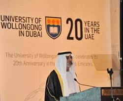 إحتفلت جامعة ولونغونغ في دبي بالعيد العشرون لتأسيسها في الإمارات العربية المتحدة بحضور مئتي ضيف، خلال عشاء إحتفالي أقيم في قاعة مجلس السلام في ميناء السلام، مدينة جميرة.